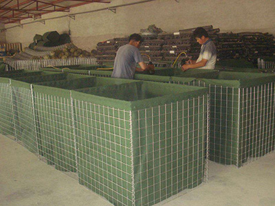 軍事防護網墻采用低碳鋼絲焊接,精湛鍍鋅工藝防銹,外加土工布進行包裝,進行組裝和折疊。